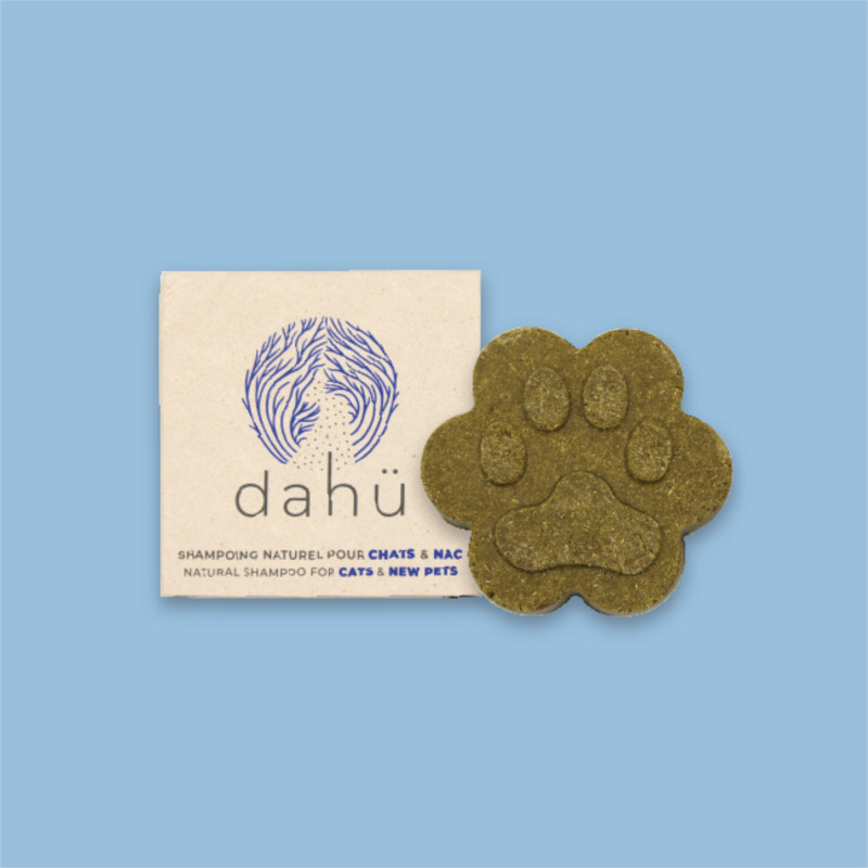 Mouillez votre animal, mouillez votre shampoing solide, frottez-le directement sur le pelage de votre animal jusqu'à l’obtention de la mousse désirée. Lavez votre animal puis rincez le abondamment. La mousse est sans danger en cas d’ingestion pour votre chat ou nac. Vous le lavez à l’extérieur ? Notre shampoing solide est 100% biodégradable dans la nature, aucun danger pour les nappes phréatiques. La boite de Dahü est 100% biodégradable et compostable. Fabriquée à partir de résidus organiques de raisin, elle ne nécessite pas de traitement chimique inutile et toxique. * Le shampoing solide Dahü ne peut en aucun cas se substituer à un traitement vétérinaire ni un produit pharmaceutique.